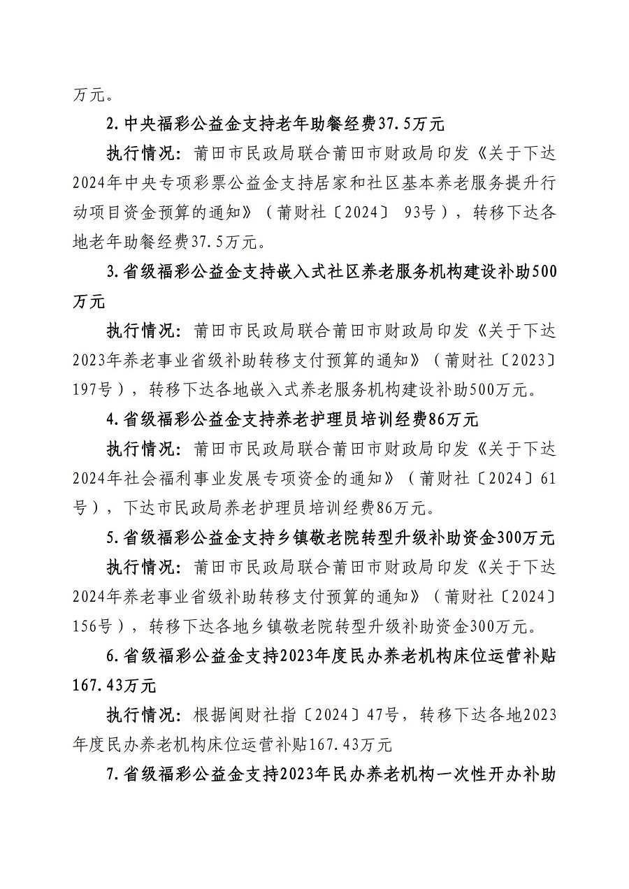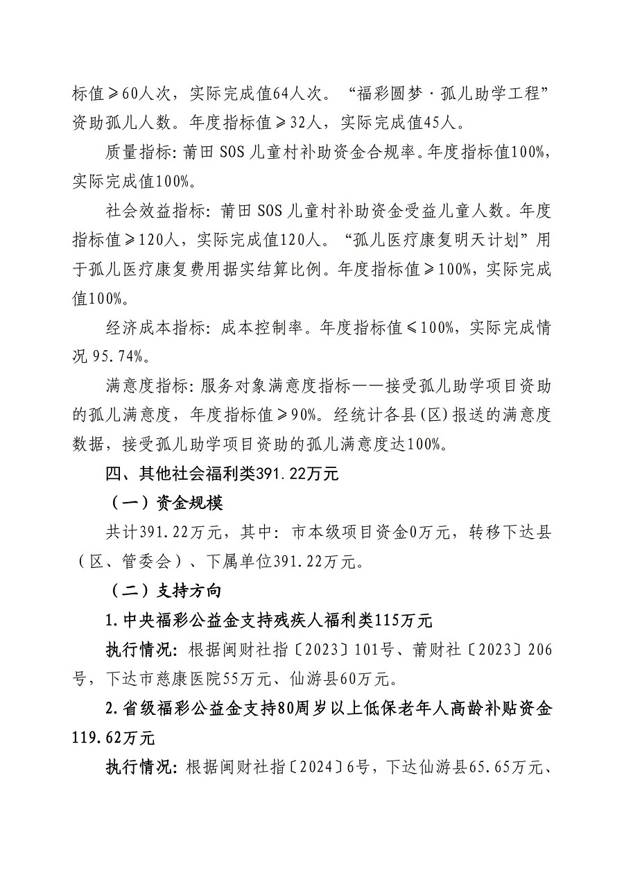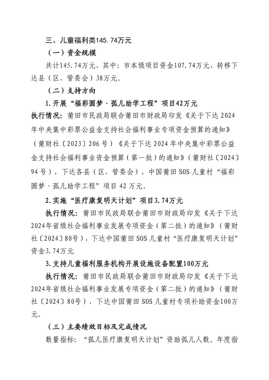 莆田市民政局2024年度上级福利彩票公益金 使用和管理情况公告