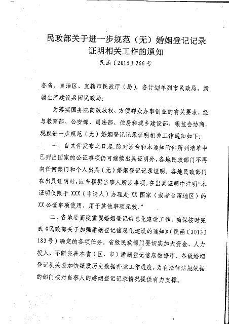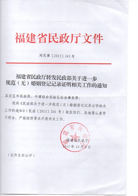 福建省民政厅转发民政部关于进一步规范(无)婚姻登记记录证明相关工作的通知