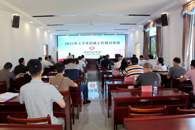 为贯彻落实市委重点工作调度会“双过半”工作要求,全力推动民政事业高质量发展,7月8日-9日,莆田市民政局在莆田市党史学习教育基地中共上宫支部旧址,举办2022年上半年民政工作研讨培训班。市民政局党组书记柳金本、局长张宗贤出席并作讲话。市民政局领导班子成员、二级调研员围绕分管领域作点评布置发言,6个机关科室围绕各自业务作研讨交流发言,各县(区、管委会)民政局主要负责同志围绕上半年工作情况作汇报发言。