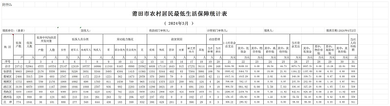 2024年03月农村居民最低生活保障统计表