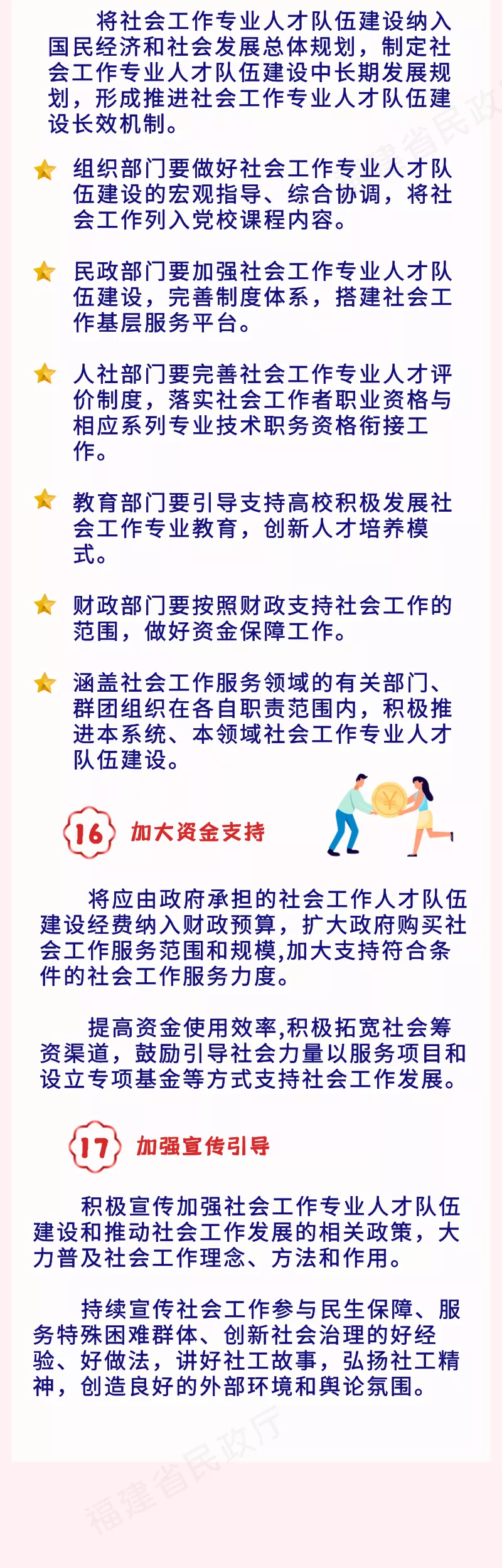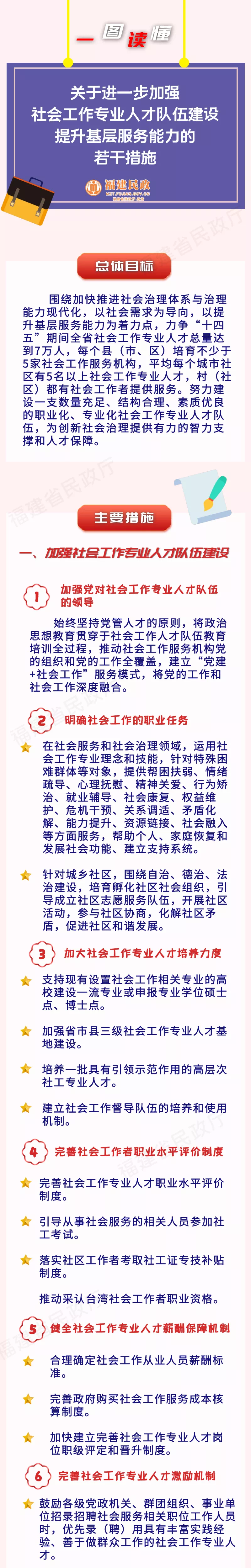 福建省民政厅 中共福建省委组织部等十七部门印发《关于进一步加强社会工作专业人才队伍建设 提升基层服务能力的若干措施》的通知