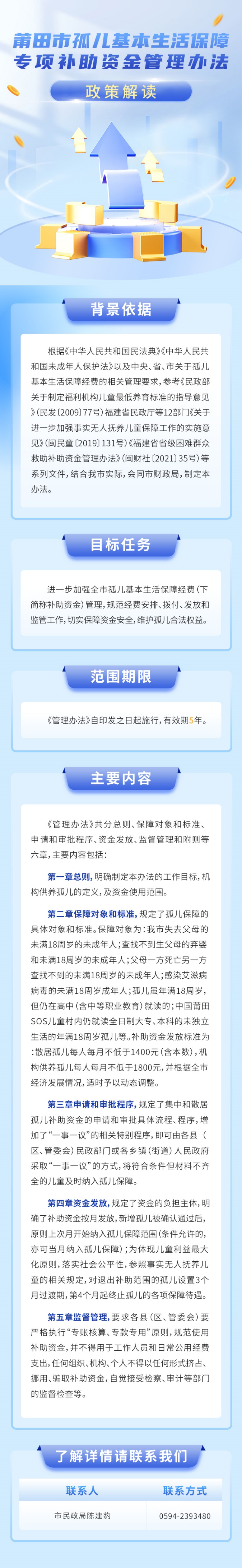 《莆田市孤儿基本生活保障专项补助资金管理办法》政策解读