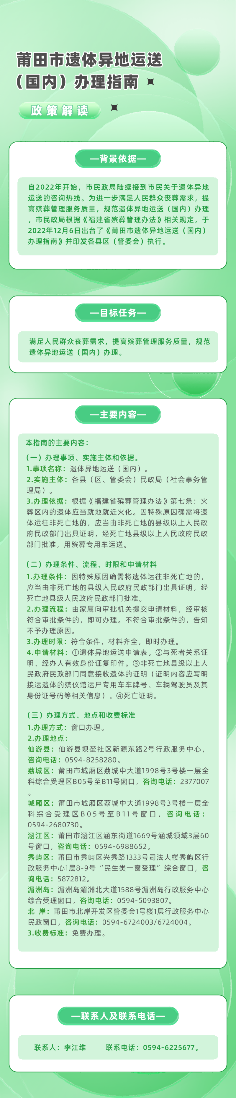 图解|《莆田市遗体异地运送(国内)办理指南》政策解读