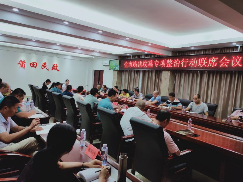 9月16日下午,市民政局组织召开全市违建墓地专项整治行动联席会议,市发改委、自然资源、生态环境、住建、城市管理、农业农村、文旅、市场监管、林业等部门分管领导及业务负责人参加会议。